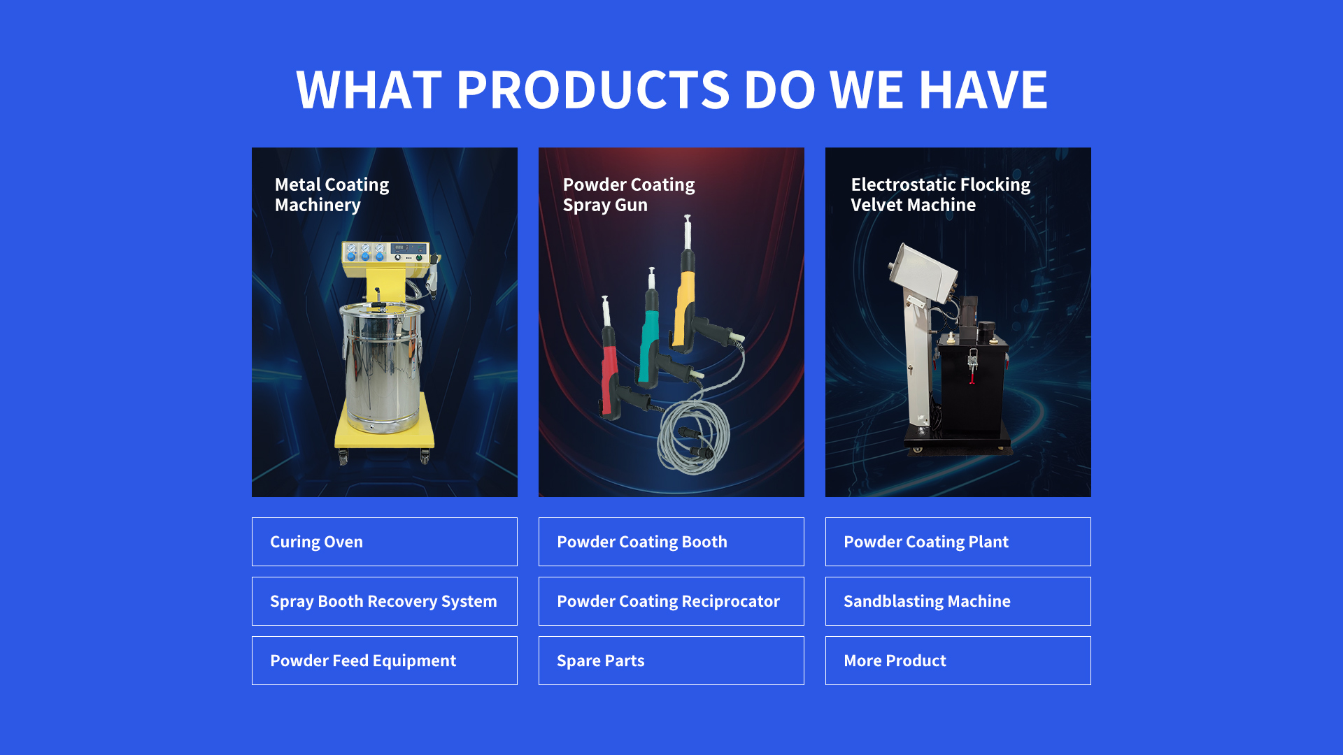 Powder Coating Spray Machines are widely used in industries such as automotive, aerospace, furniture, and electronics. They are ideal for coating metal parts like vehicle frames, machinery components, and household appliances